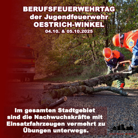 Die vier Jugendfeuerwehren der Stadt Oestrich-Winkel starteten die Herbstferien mit ihrem alljährlichen Berufsfeuerwehrtag über zwei Tage. Am Samstag ging es los und die 40 jungen Nachwuchskräfte im Alter von 10-17 Jahren starteten jeweils in ihren Feuerwehrhäusern mit dem Alltag wie bei einer Berufsfeuerwehr. Das beinhaltet auch die Übergabe der Fahrzeuge wie bei einem Schichtwechsel auf einer Berufsfeuerwehrwache und das Übernachten im Feuerwehrhaus. Jede Jugendfeuerwehr hat neben der theoretischen Ausbildung und Dienstsport eigene kleinere