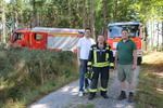 Löschfahrzeug holte sich Wasser aus dem Weiher gegenüber der Einsatzstelle. Bürgermeister Carsten Sinß hat sich während der Übung vom Stadtbrandinspektor Christian Ringel und seinem Stellvertreter Ingo Platz an allen Standorten erläutern lassen was jeweils die Aufgaben und der Zweck der Vegetationsbrandbekämpfung sowie die Funktionalität des Einsatzleitwagen ist. Förster Maximilian Kaller hat ebenfalls vorbeigeschaut und sich ein Bild von der Übung gemacht. Im Anschluss der Übung gab es im Hallgartener Feuerwehrhaus ein Abendessen von einem Caterer, was alle Beteiligten sichtlich zufrieden stellte.