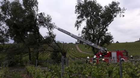 Am Pfingstsonntag wurde die Feuerwehr Winkel zu einem Baum auf einer Straße in den Weinbergen Richtung Schützenhaus gerufen. Mittels einer Motorkettensäge wurde begonnen den Baum zu beseitigen. Da es von Nöten war von oben herab den Baum abzutragen wurde die Drehleiter aus Oestrich angefordert. Zusätzlich wurde eine Elektrosäge eingesetzt. Insgesamt waren neun Einsatzkräfte mit zwei Feuerwehrfahrzeugen knapp 1,5 Stunden im Einsatz.