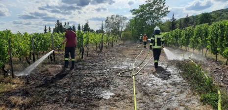 Flächenbrand in Weinbergszeilen hinter Tennisplätzen in Hallgarten