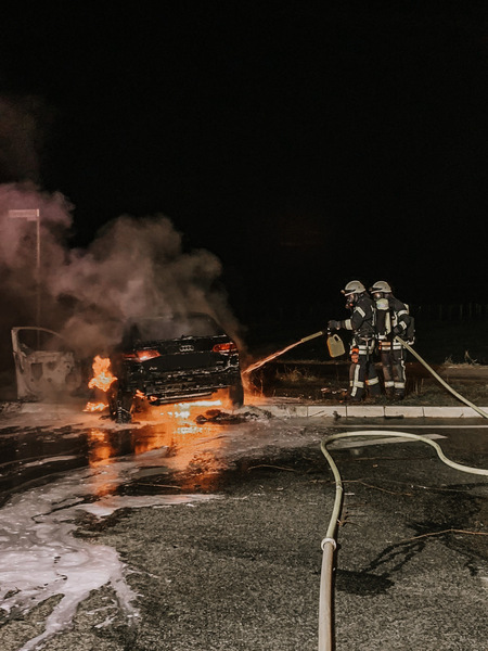 Am Samstagvormittag kam es zu einem PKW-Brand im Außenbereich einer Kfz-Werkstatt in Oestrich. Die Leitstelle alarmierte alle vier Stadtteilfeuerwehren in Oestrich-Winkel mit dem Einsatzstichwort F3 - Kfz-Werkstatt. Dies bedeutet, dass es sich um einen ausgedehnten Brand handelt. Glücklicherweise haben die ersten Einsatzkräfte am Einsatzort festgestellt, dass ein PKW im Außenbereich einer Kfz-Werkstatt brennt und keine unmittelbare Gefahr für die umstehenden Gebäude bestand. Ein Angriffstrupp unter Atemschutz löschte mittels eines Schaumrohrs das Feuer. Schnell konnte „Feuer aus“ vom Einsatzleiter gemeldet werden und alle anderen anrückenden Einsatzkräfte aus Hallgarten, Mittelheim und Winkel konnten ihre Einsatzfahrt abbrechen. Der Werkstattinhaber hatte noch mittels Feuerlöscher und Gießkanne versucht das Feuer selbst zu löschen bevor die Feuerwehr eintraf. Hierbei hat er wohl ein wenig Rauchgase eingeatmet und wurde vorsorglich vom Rettungsdienst versorgt. Die Höhe des Schadens am Fahrzeug sowie die genaue Ursache des Brandes muss noch geklärt werden.